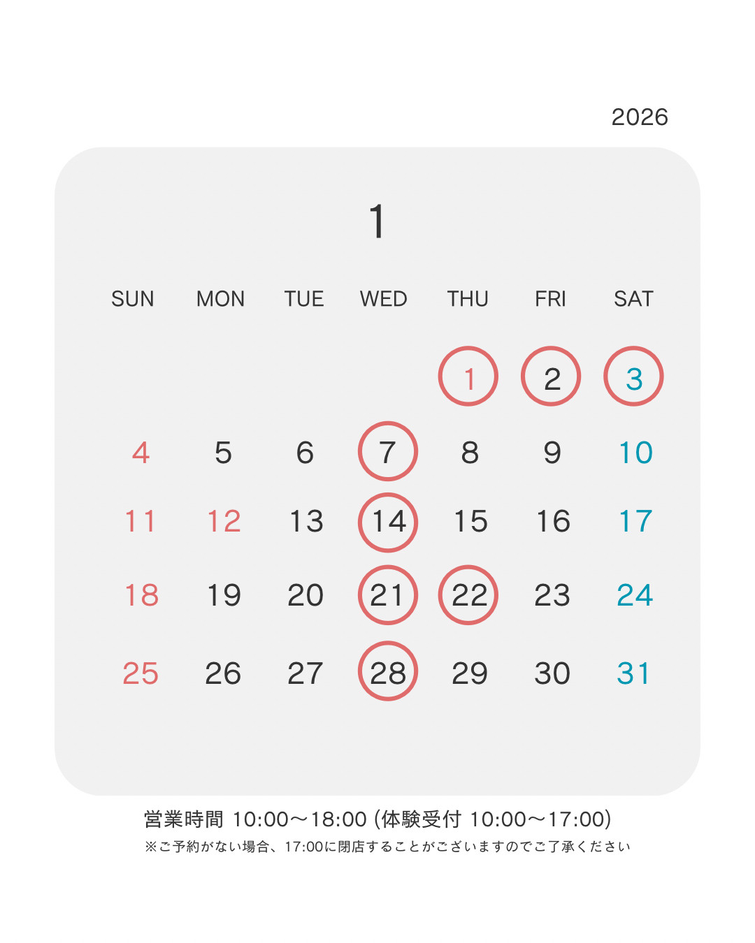 1月のお休みのお知らせです🚩